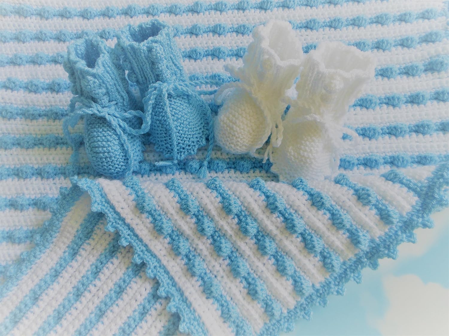 Each kit includes yarn to make one blanket in each color and design shown. Size k (6.5mm) crochet hook. It keeps the blanket in place without adding bulk under the straps. This baby blanket is 63 cm x 63 cm (25″ by 25″) and takes 3 skeins of noorse sokkenwol yarn (just under 500 meters in total).