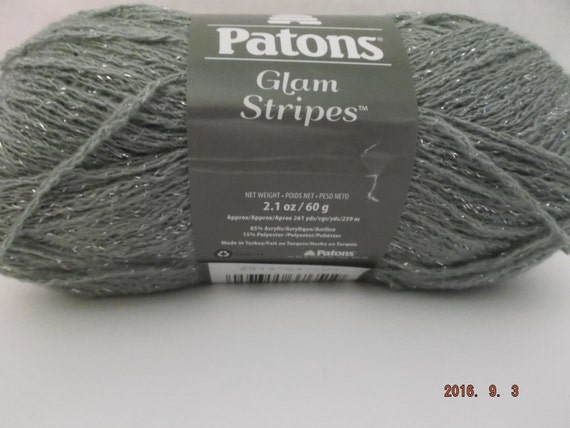 Background. Patons glam stripes denim jean blue yarn with silver lot of 6 skeins each skein is 60g (2.1 oz) approximately 239m (261 yds) 85% acrylic, 15% polyester made in turkey. Check out our patons glam stripe selection for the very best in unique or custom, handmade pieces from our shops.