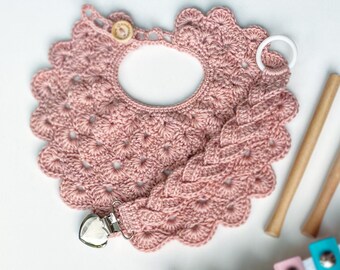The wreath bib, lamp post bib and the hollies and berries one. This sweet crochet baby bib is adapted from a vintage pattern and perfect for a toddler. Baby bib crocheted in solid shell stitch. Easy crochet baby bib with contrast trim.
